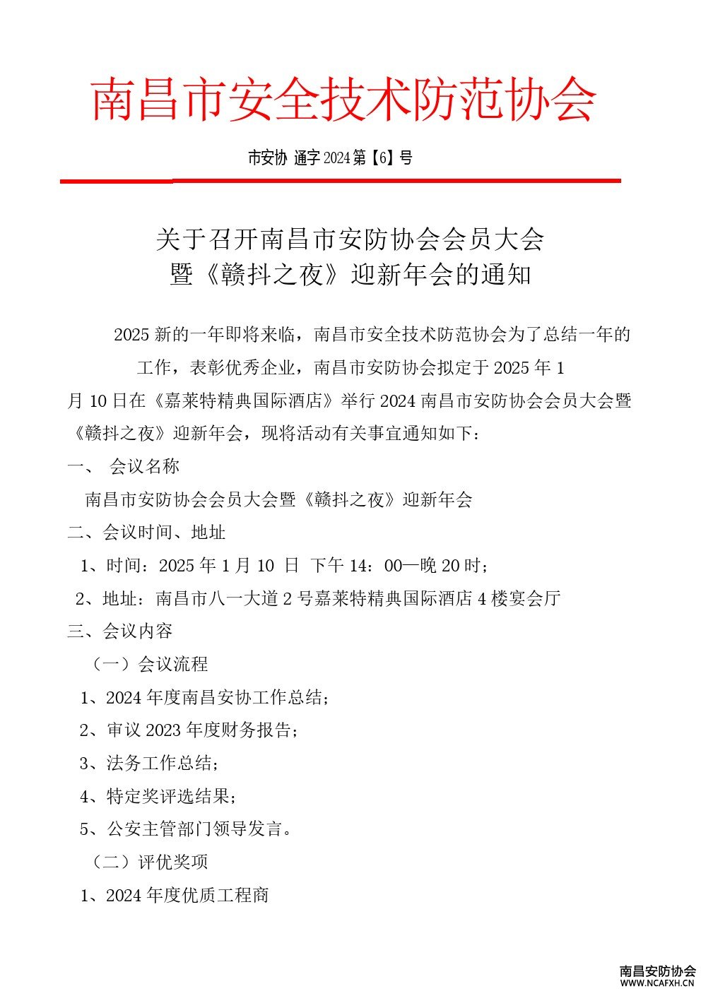南昌安协2024迎新年会的通知